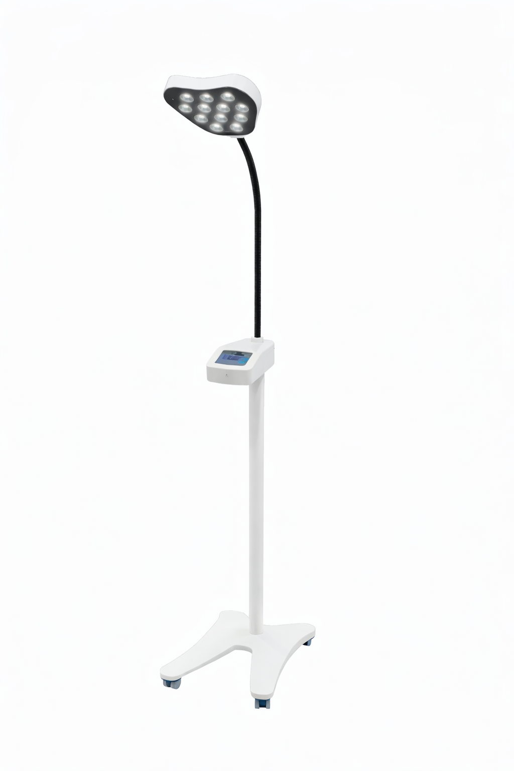 LED Examination Light with intensity of 100000 LUX & 4300 Kelvin (day light). The entire body is made of Aluminum. It comes with a metallic sterile handle for easy positioning of light head. Anti static castors with brakes for better stability.